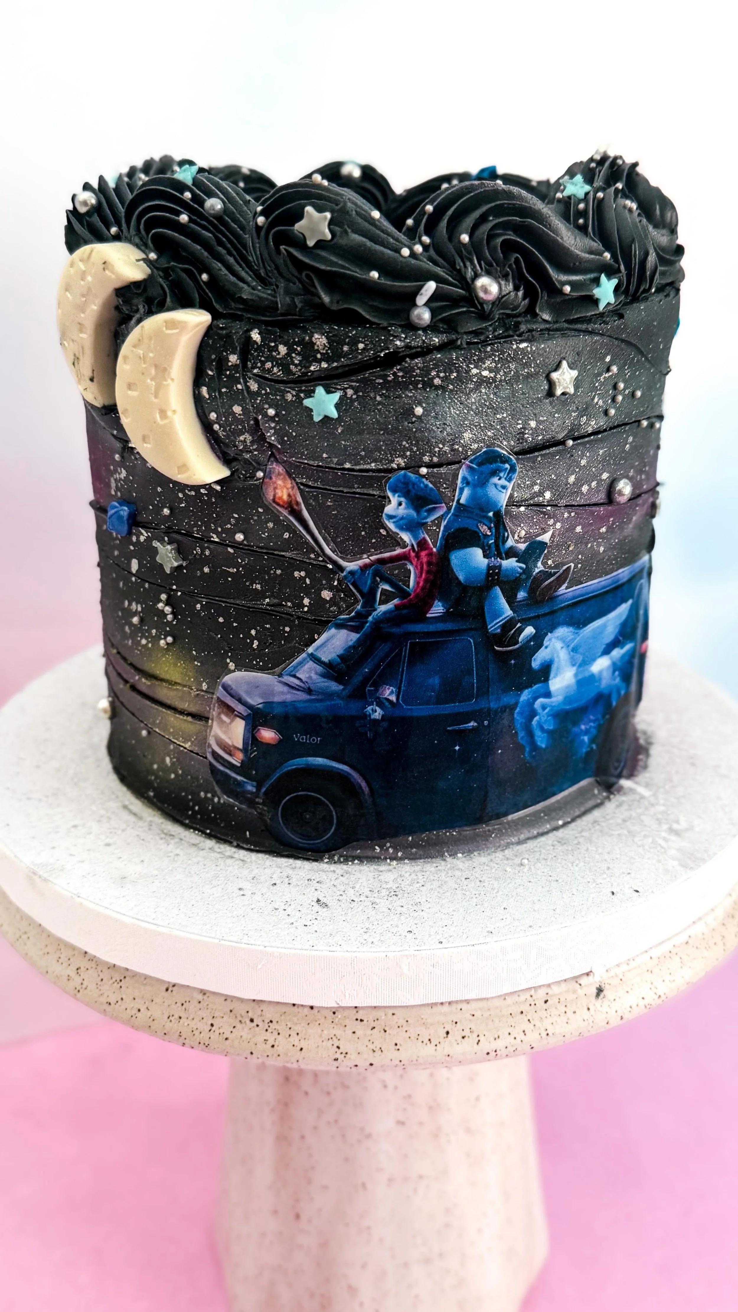 Shiner Boch cake, buttercream frosting and crushed pretzels.